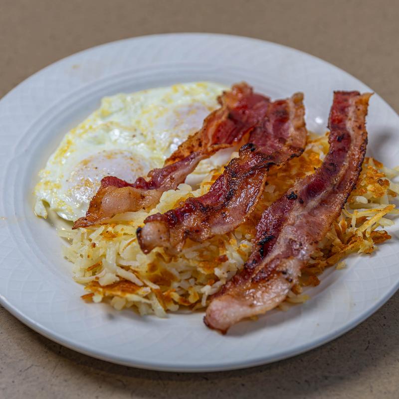 Served hash browns, toast & jelly. Choice of breakfast meat is optional.